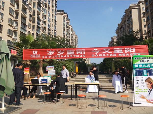 九月九,話重陽,深情繞指尖,寄一份關(guān)懷,與愛同行。2017年10月28日,同博物業(yè)東郡華庭物業(yè)服務(wù)中心組織了一場主題為“歲歲重陽,今又重陽”的敬老活動,為小區(qū)里的老人免費檢查身體、免費理發(fā)。同博物業(yè)總經(jīng)理張曉桐更是親臨現(xiàn)場協(xié)助,并深切向老人們致以節(jié)日的問候。